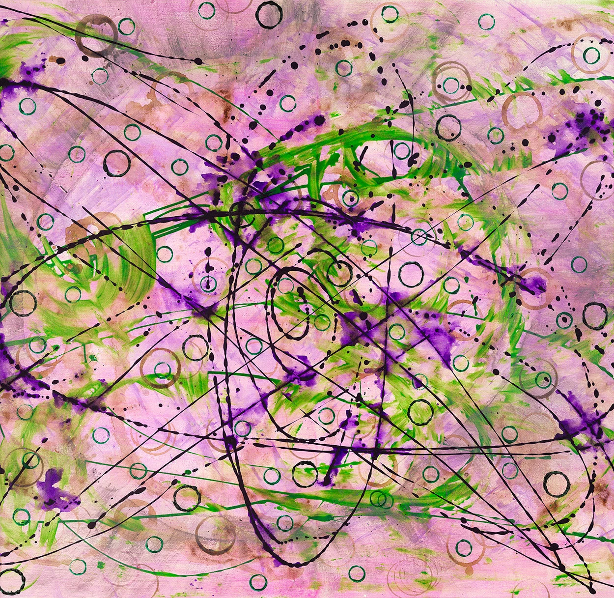 “I began to make coffee rings all over the canvas with different strengths of coffee. I added color on top of the coffee rings to make it pop!”
