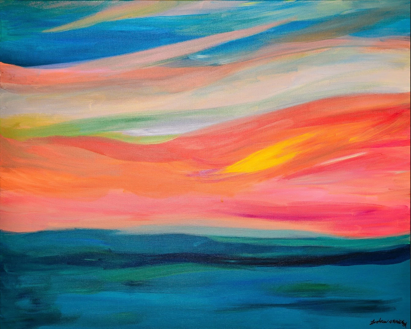 “Painting “Early Morning” was beautiful because I was thinking of all the times that I have watched the sun rise in along the Atlantic Ocean while I was in Chatham. “Early Morning” invites viewers to feel the beauty of the rising sun, just before sunrise.”