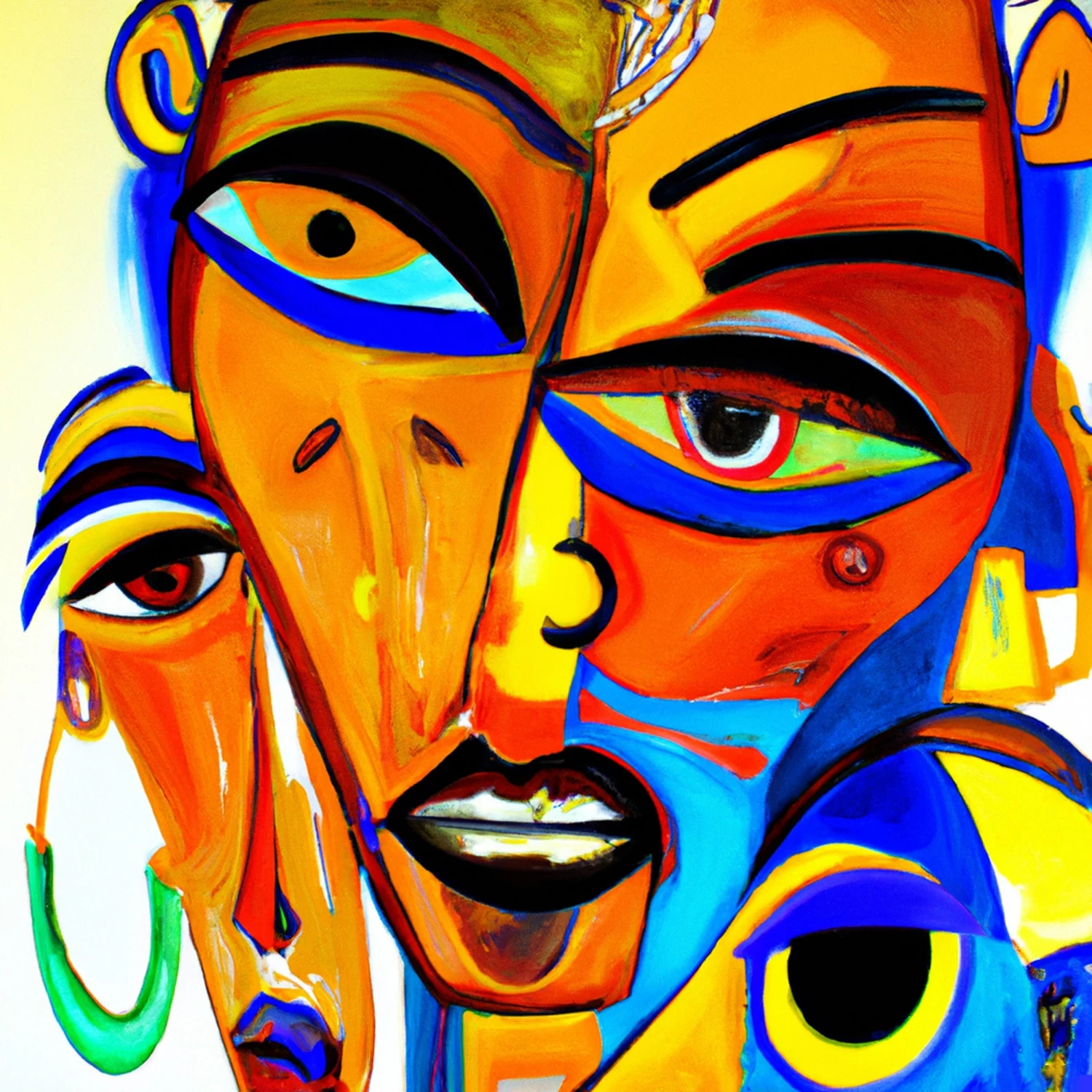 “Golden oo4 of the “Golden Series” is a captivating art series that explores the diversity and beauty of facial forms and phenotypes, drawing inspiration from cultures around the world. Through a harmonious blend of colors traditionally associated with various cultures, including bright blues, yellows, and reds, Golden celebrates the rich tapestry of human features.