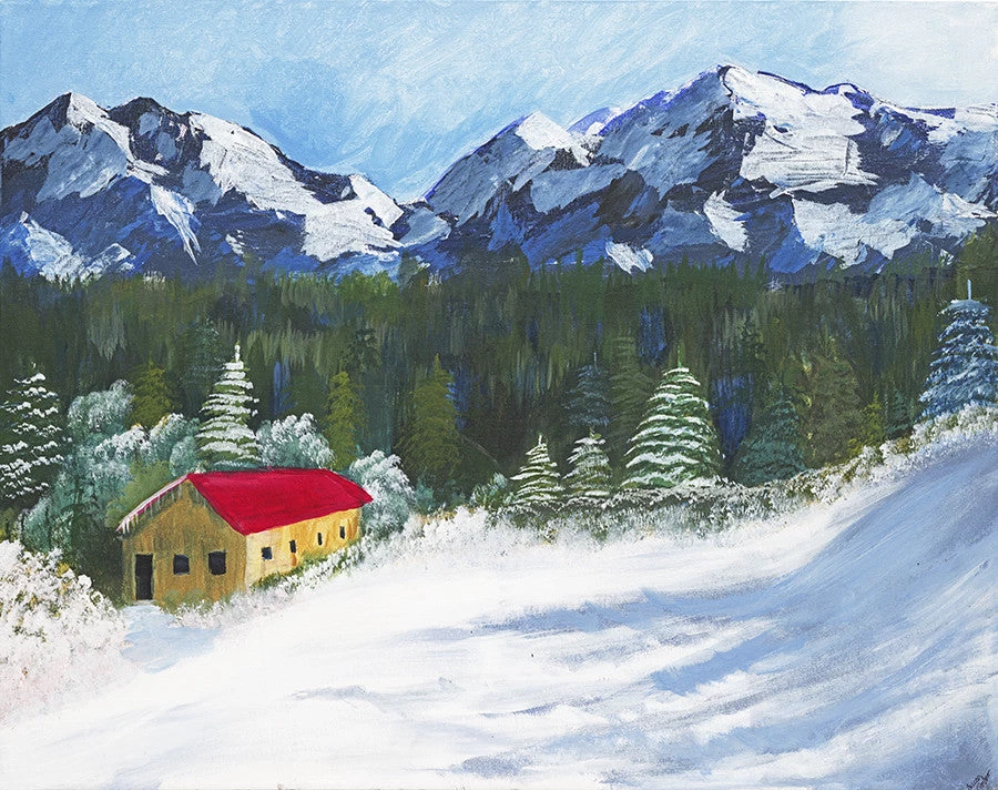 “This piece has a special place in my heart. It was my first time ever using apalette knife to do the mountains. I love watching Bob Ross paint and he has been my inspiration for my nature landscapes. This was also the biggest piece I havedone, to date.”