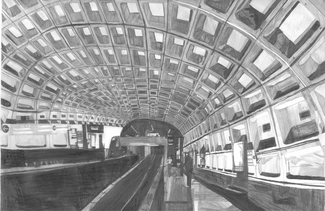 “I made this train station piece with graphite pencils. I printed out this picture with Claraty Art instructor, Elliot Taylor in July 2016. It takes place at the Washington D.C. train station.“